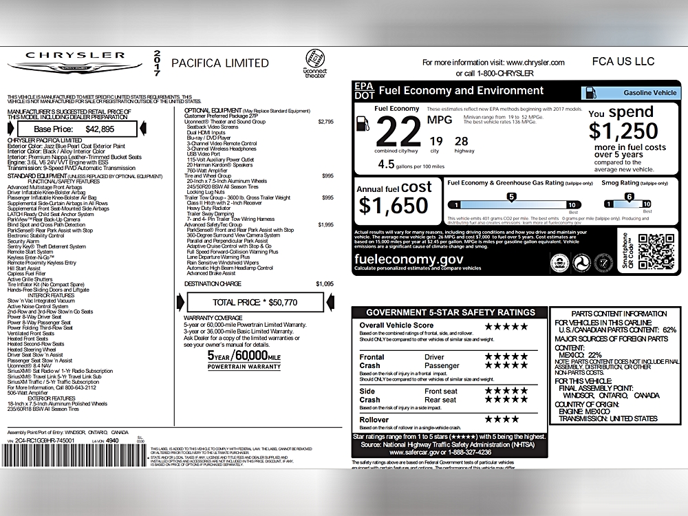 2017 Chrysler Pacifica Limited FWD 3.6L